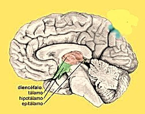 3. El diencéfalo se sitúa entre el tronco del encéfalo y el cerebro, y consta de dos partes principales: el tálamo y el hipotálamo.